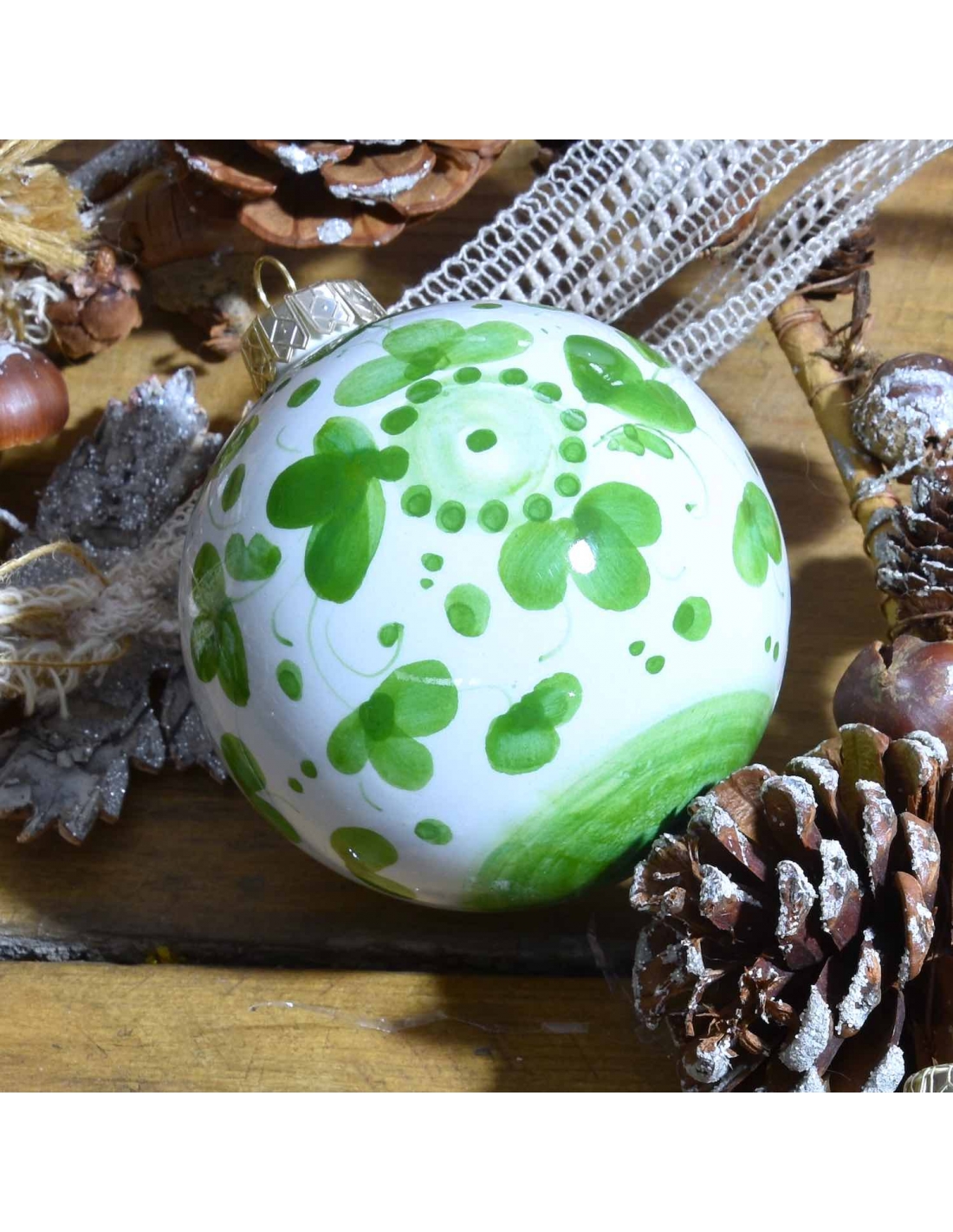 Classic sphere-shaped Christmas ornament to hang on your Christmas tree to light it up with vibrant colors or to give a touch of lively joy to your Christmas table centre piece. 100% hand-made in Italy