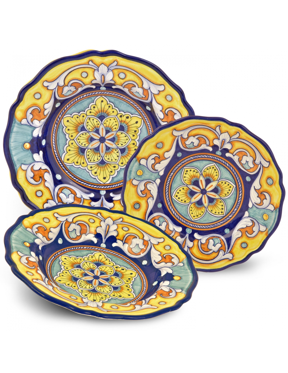 This table setting  is hand painted with one of our Ornato Collections. With its vibrant colors it is perfect for any table. It is 100% MADE IN ITALY, painted entirely inside our factory