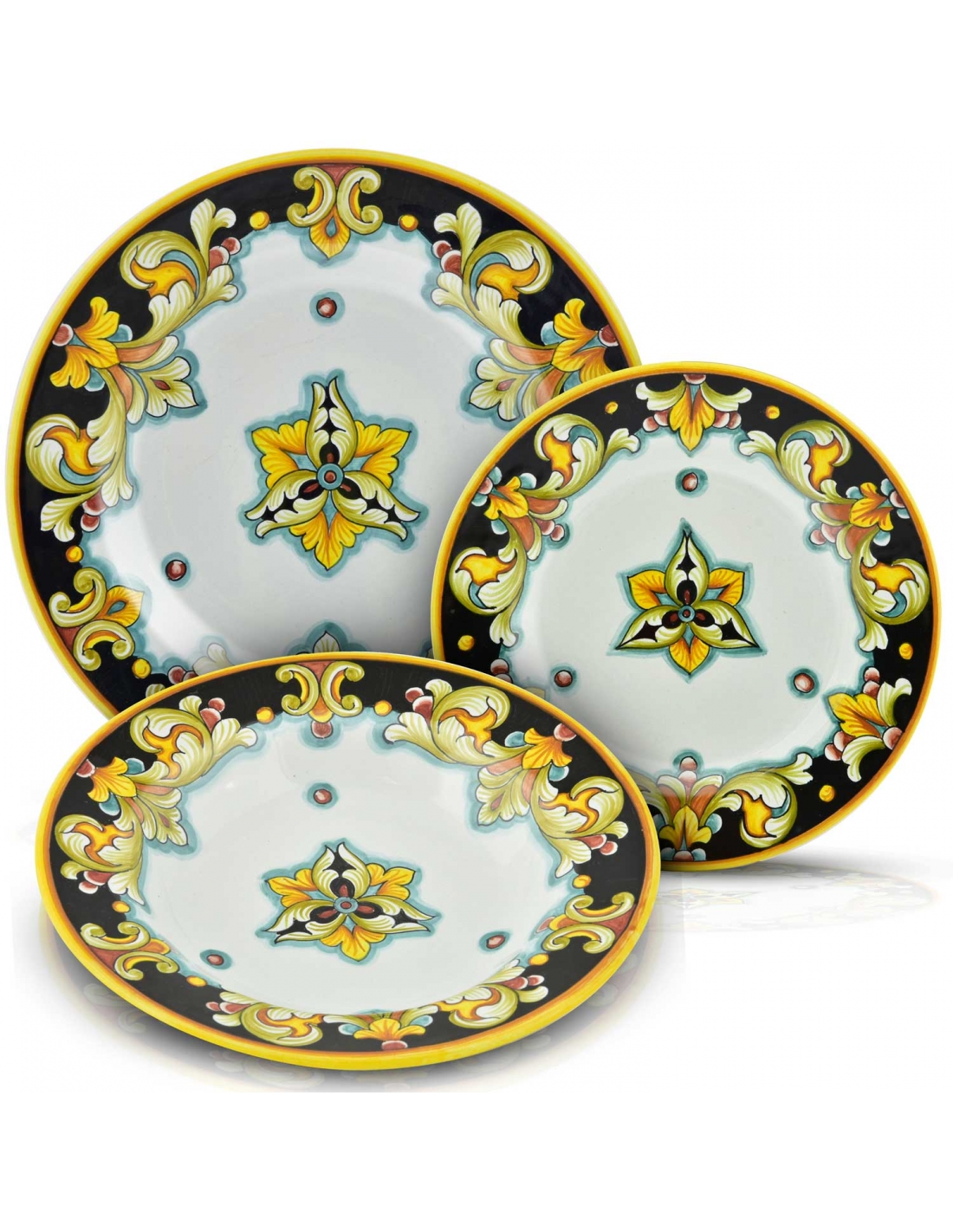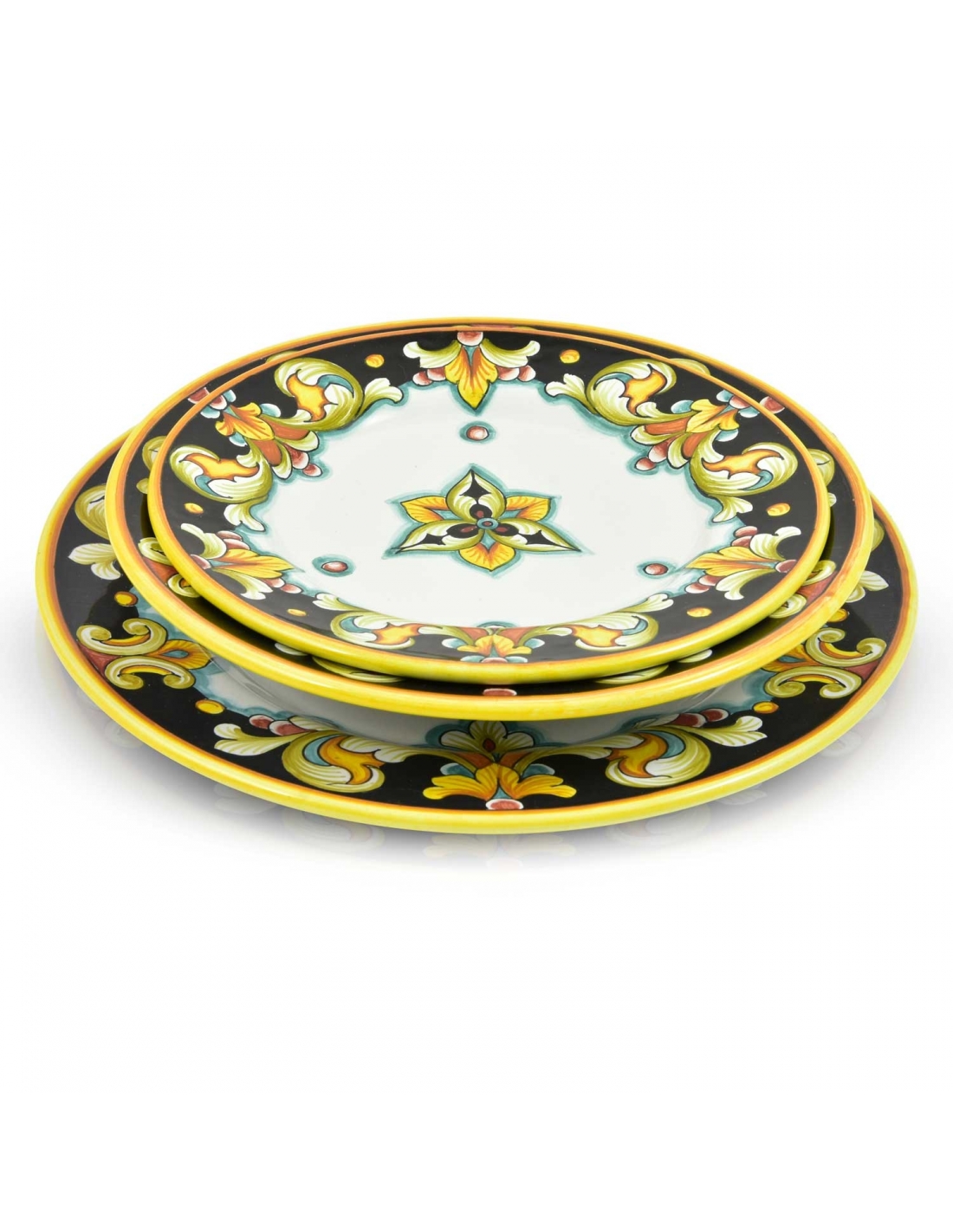 This table setting is entirely hand-painted with one of the refined designs from our Ornato Collection.