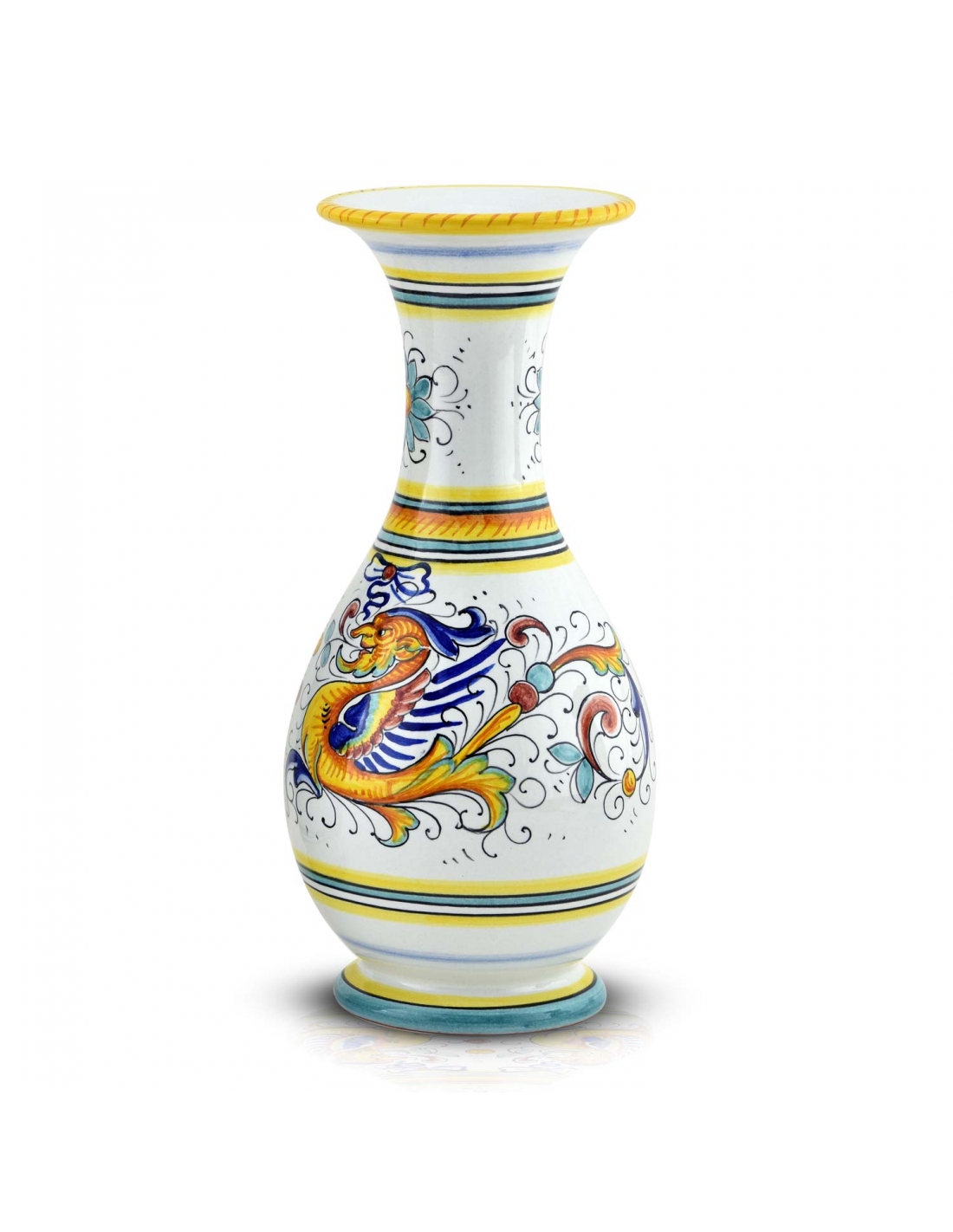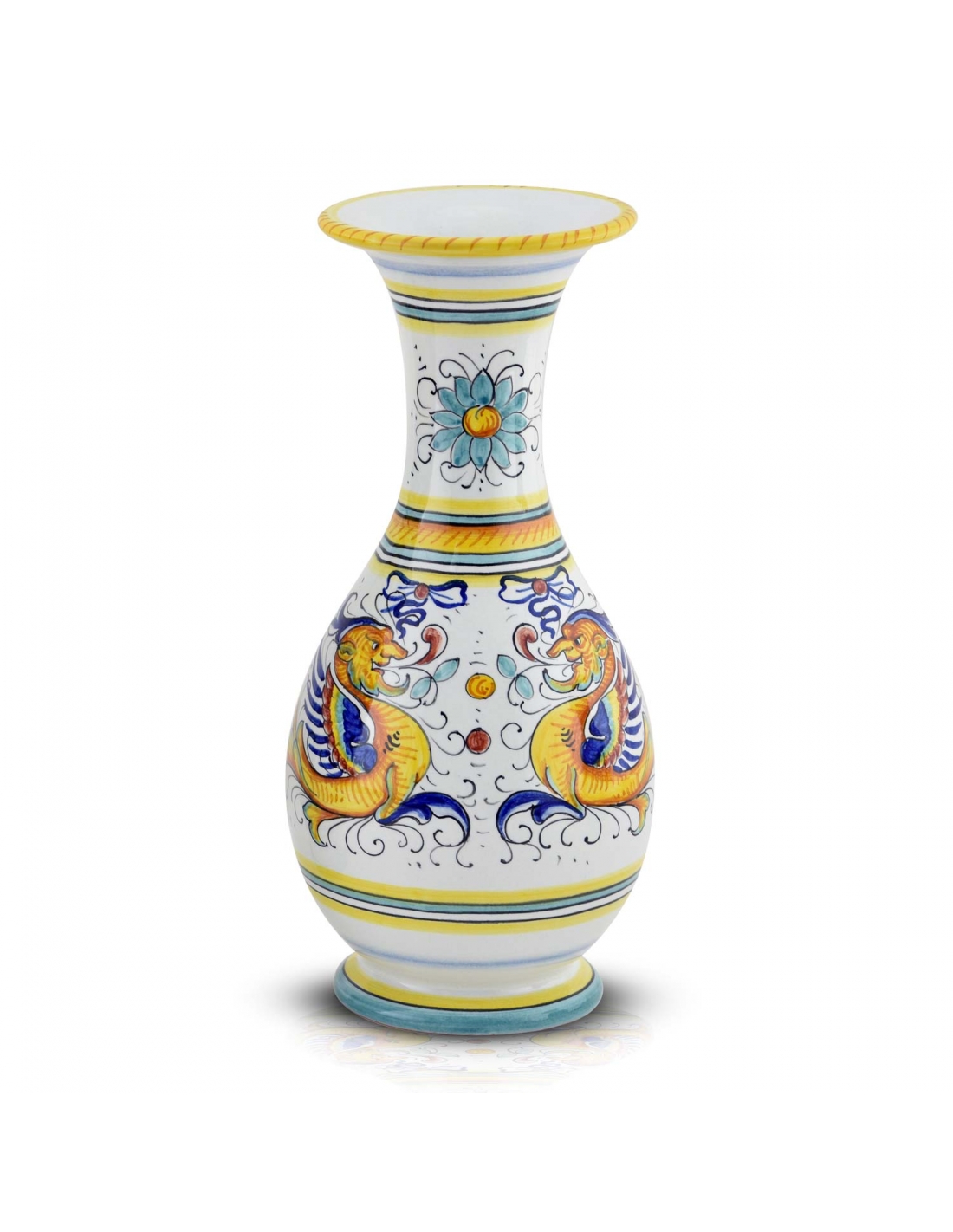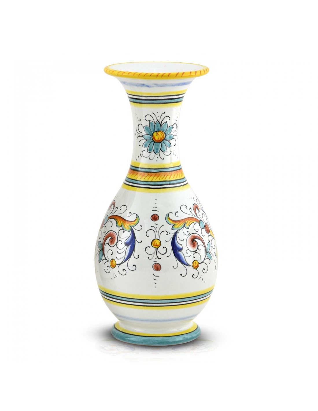 Our vase is suitable for any room in the house. At its best when filled with flowers but on its own it is an elegant and refined statement piece. It is fully hand-made and hand-painted in classic Deruta colours. Add it to your decor to give a touch of tradition to your home.