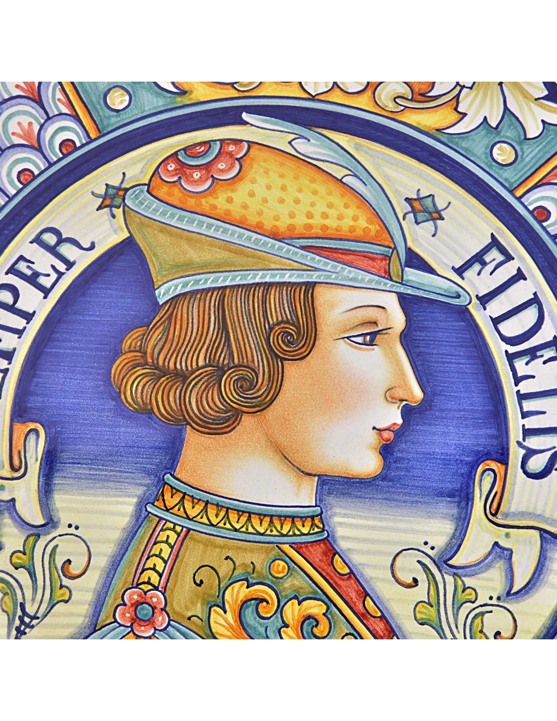 The Renaissance portraits Collection is our most prestigious and lavish collection, as this plate demonstrates. When hung on the wall, either alone or in a pair with one of our renaissance ladies, this knight will give your home that luxurious touch you have been looking for.