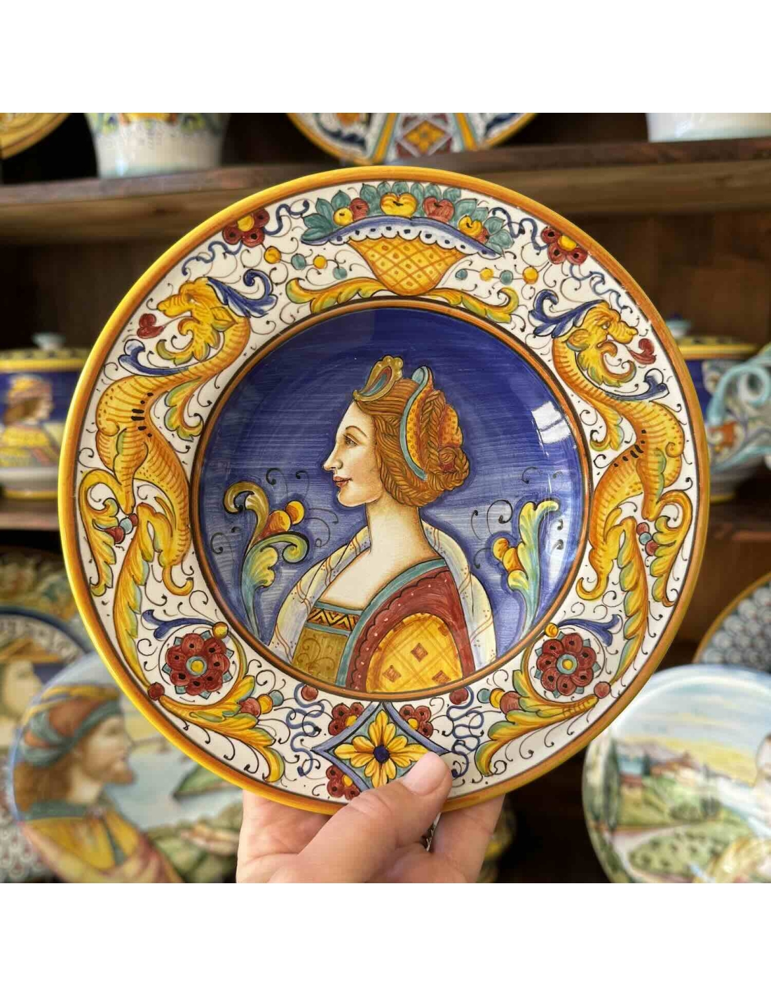 The Renaissance portraits Collection is our most prestigious and lavish collection, as this plate demonstrates. When hung on the wall, either alone or in a pair with one of our knights, this renaissance lady will give your home that luxurious touch you have been looking for