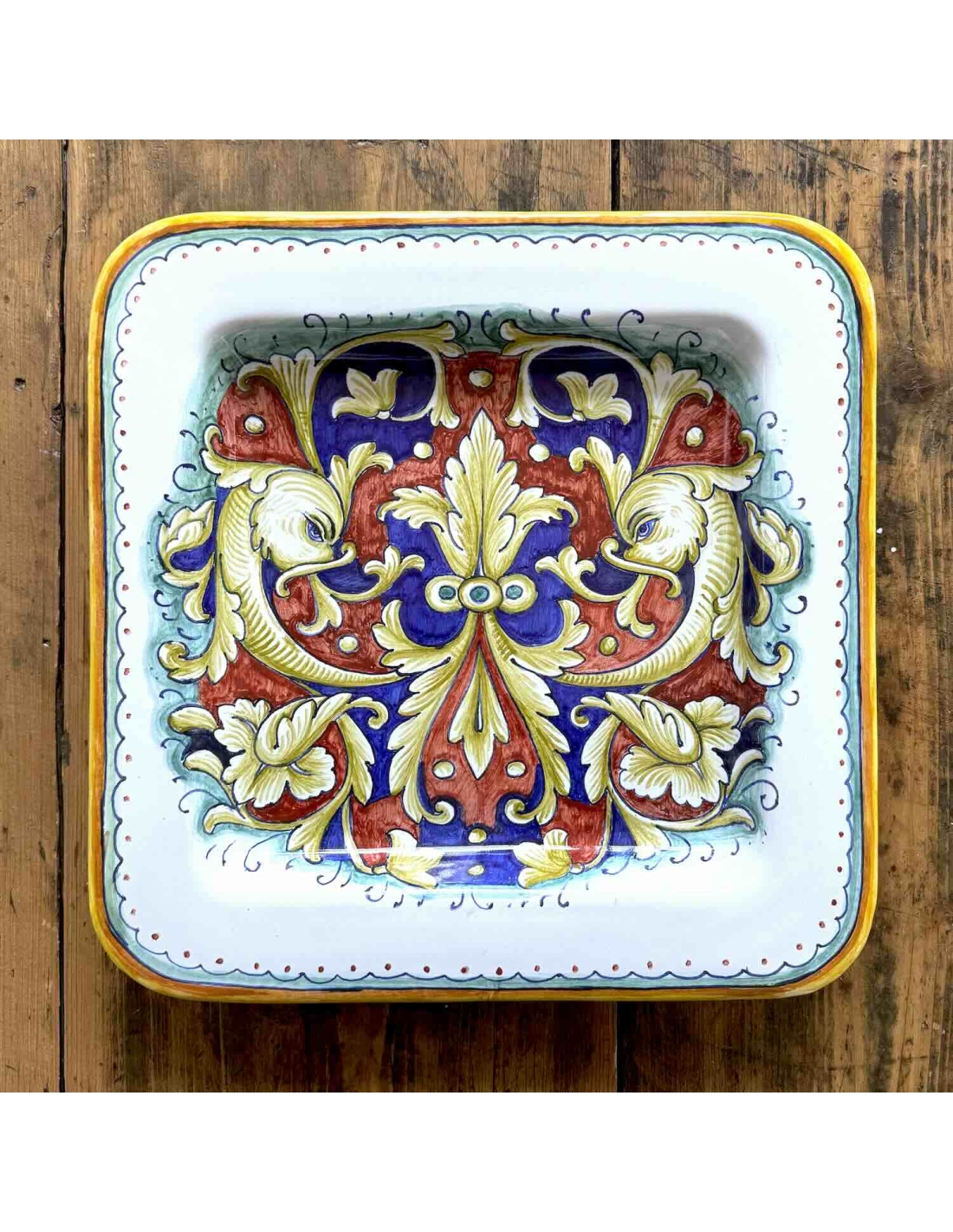Square wall plate, 30x30 cm., hand painted in Italy with our Delfini collection