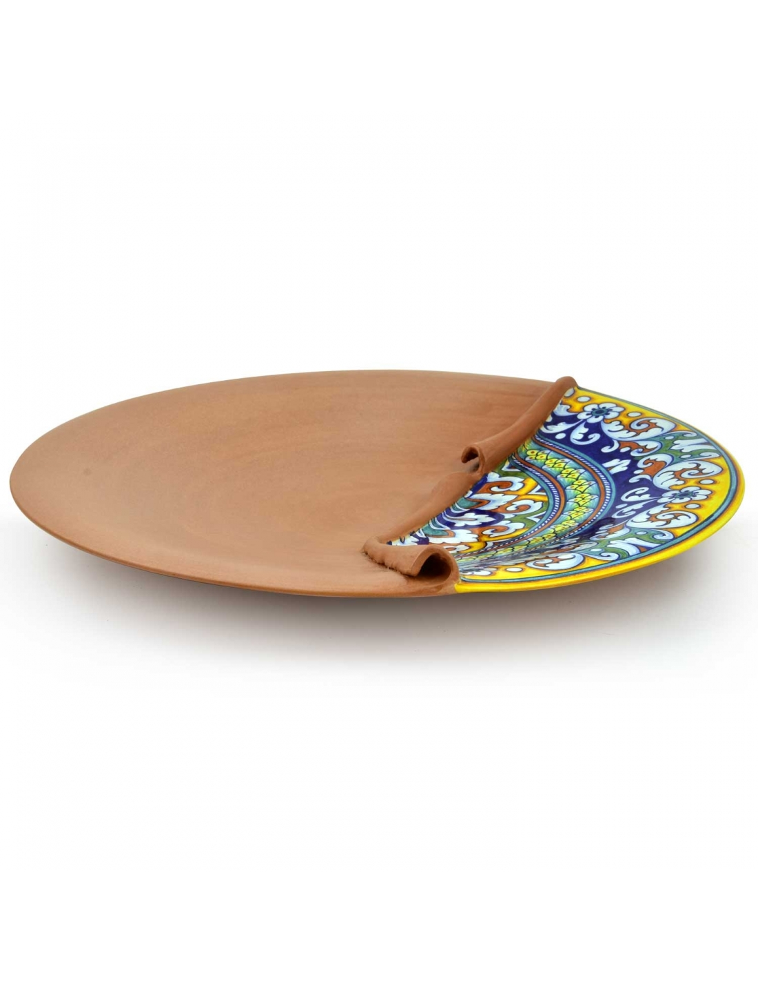 Il decoro dalle vivaci tonalità fuoriesce dallo strappo abilmente riprodotto a mano in questo piatto, rendendolo uno speciale complemento di arredo dove scultura e pittura si fondono. Qualsiasi ambiente della casa è reso elegante con un piatto Surprise. Appeso, dona alla parete un tocco ricercato e di classe, esposto sul tavolo del soggiorno si trasforma in un esclusivo centrotavola. Può diventare un regalo unico ed originale per stupire una persona speciale!