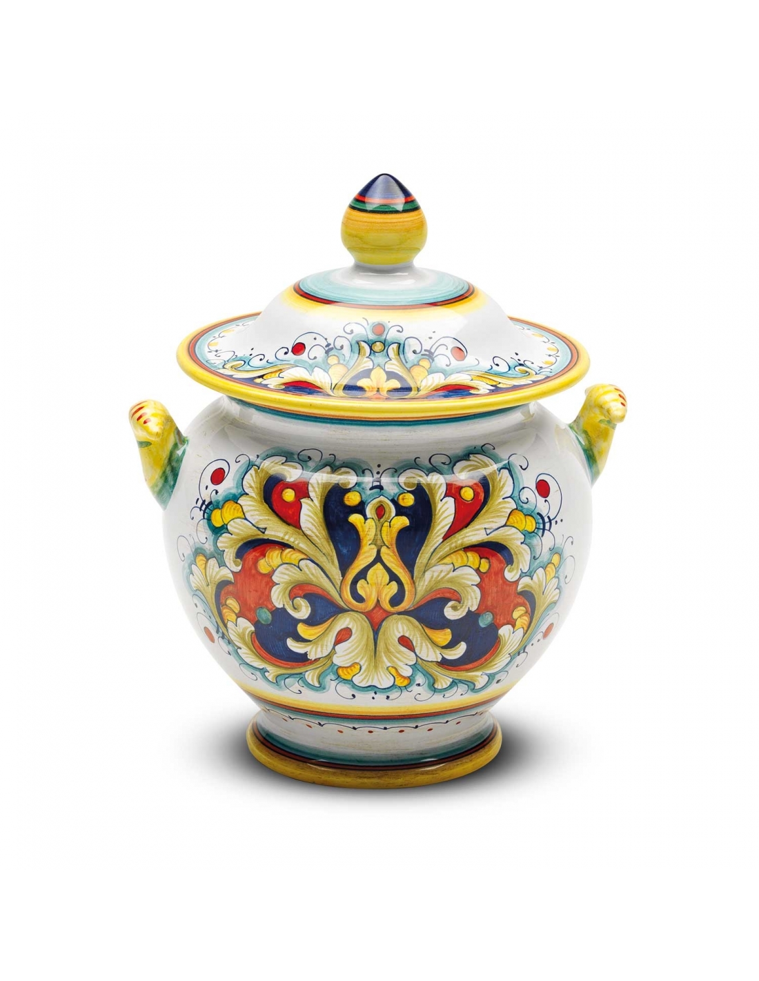 Colma delle più gustose zuppe o di fumanti minestre, questa zuppiera finemente decorata è l'ideale per portare in tavola l'eleganza. Quando non la usi per servire, non la chiudere nella credenza ma ponila al centro del tuo tavolo da pranzo, renderà il tuo soggiorno più festoso ed allegro grazie ai suoi colori dai toni caldi e decisi, mai banali.